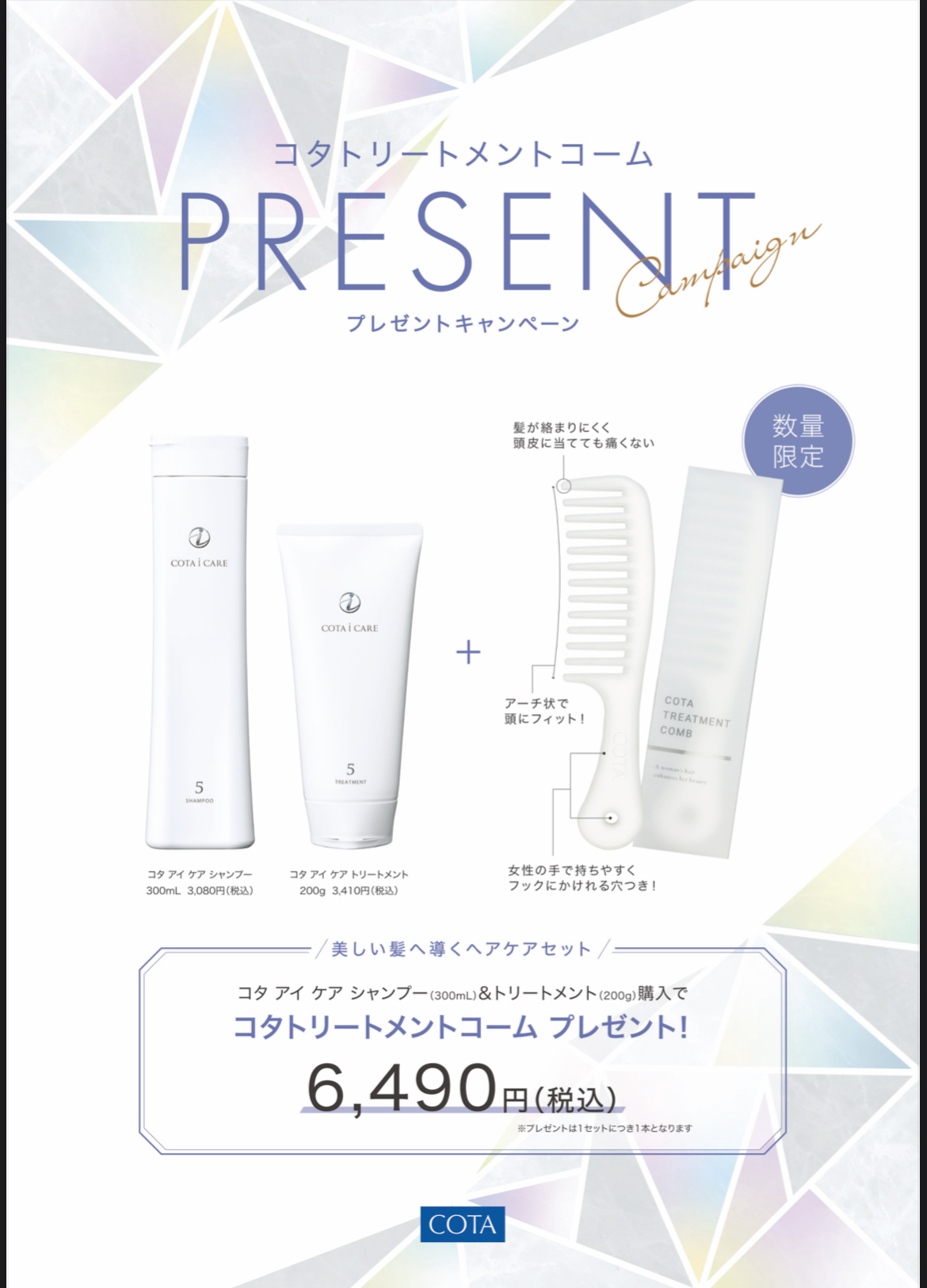 続いては、COTAシリーズのシャンプー・トリートメントのセット購入でお得なキャンペーンのご紹介です。